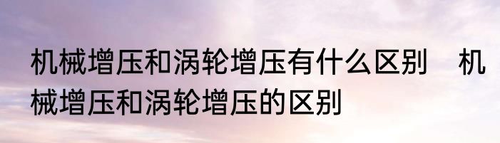 机械增压和涡轮增压的区别?