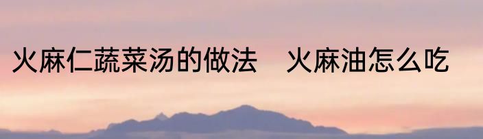 火麻仁蔬菜汤的做法 火麻油怎么吃