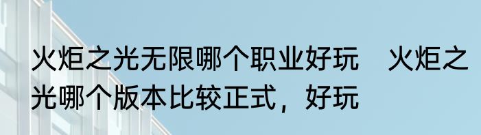 火炬之光无限哪个职业好玩 火炬之光哪个版本比较正式,好玩