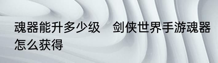 魂器能升多少级 剑侠世界手游魂器怎么获得