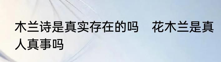 木兰诗是真实存在的吗?
