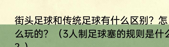 提及街头足球和传统足球有什么区别?怎么玩的?(3人制足球塞的规则是什么?)的相关内容,许多人不太了解,来看看小兰的介绍吧!