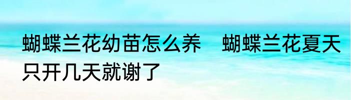 蝴蝶兰花幼苗怎么养 蝴蝶兰花夏天只开几天就谢了