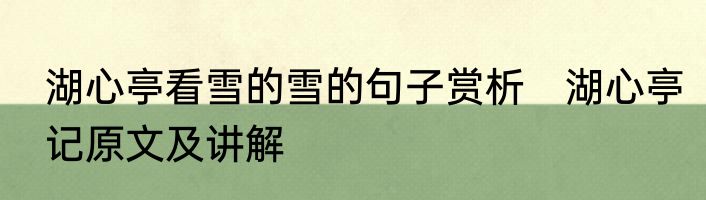 湖心亭看雪的雪的句子赏析 湖心亭记原文及讲解