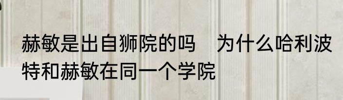 赫敏是出自狮院的吗 为什么哈利波特和赫敏在同一个学院