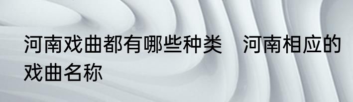 河南戏曲都有哪些种类 河南相应的戏曲名称