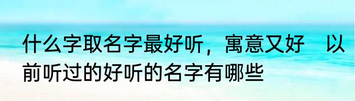什么字取名字最好听,寓意又好 以前听过的好听的名字有哪些