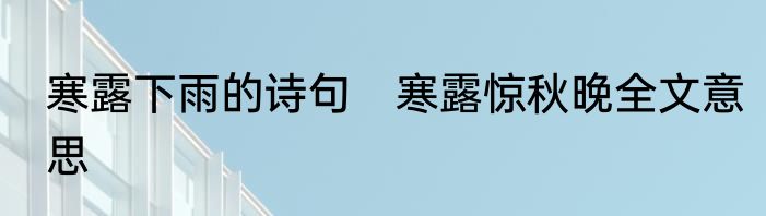 寒露下雨的诗句 寒露惊秋晚全文意思