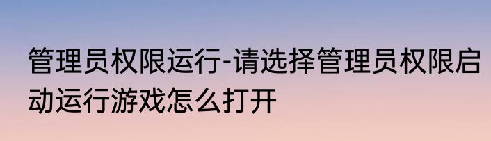 管理员权限运行-请选择管理员权限启动运行游戏怎么打开?