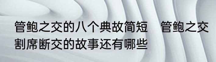 管鲍之交的八个典故简短 管鲍之交割席断交的故事还有哪些