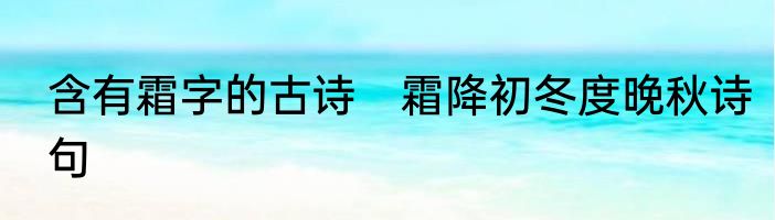 含有霜字的古诗 霜降初冬度晚秋诗句