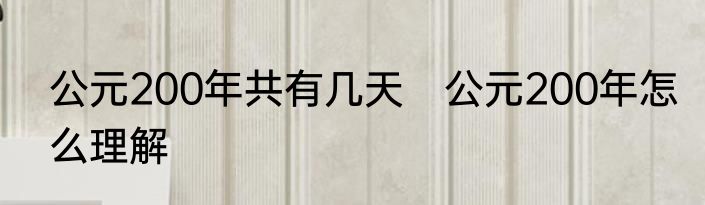 公元200年共有几天 公元200年怎么理解