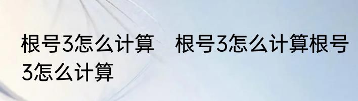 根号3怎么计算根号3怎么计算?