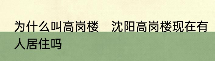为什么叫高岗楼 沈阳高岗楼现在有人居住吗