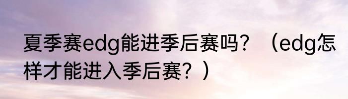 夏季赛edg能进季后赛吗?(edg怎样才能进入季后赛?)