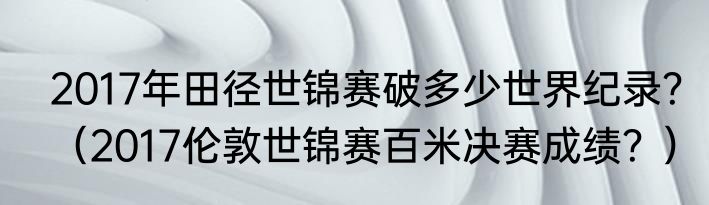 简介提及2017年田径世锦赛破多少世界纪录?(2017伦敦世锦赛百米决赛成绩?)的相关内容,许多人不太了解,来看看小达的介绍吧! 2017年田径世