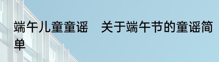 关于端午节的童谣简单?